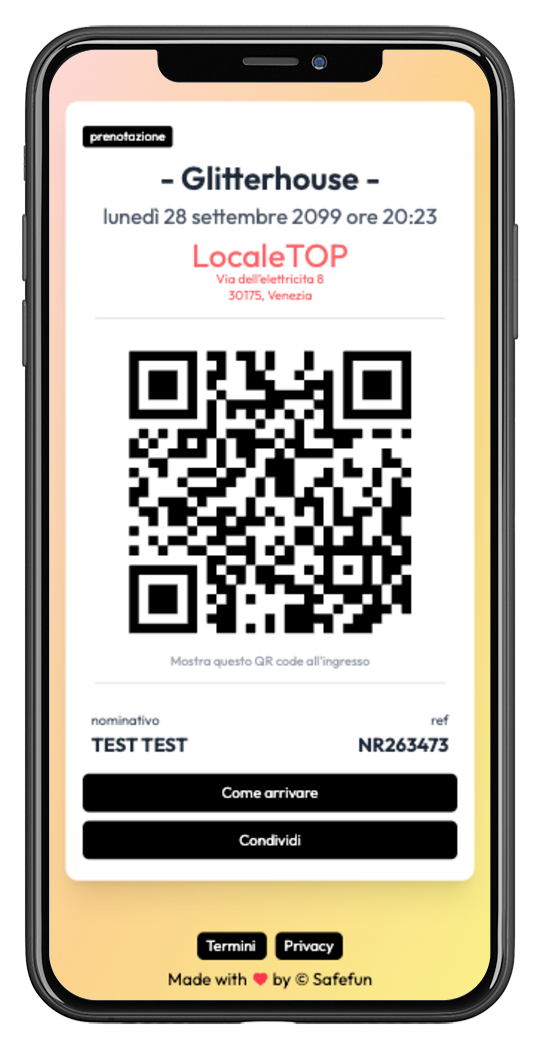 Il sistema in automatico genera per te una pagina web dove i tuoi utenti potranno prenotare l'accesso e ricevere un QR code da presentare all'accesso.